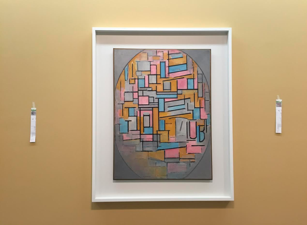 Mondrian, com a Composição em Oval, (abaixo) concluída em 1914, busca a abstração, por ser uma comunicação mais universal.