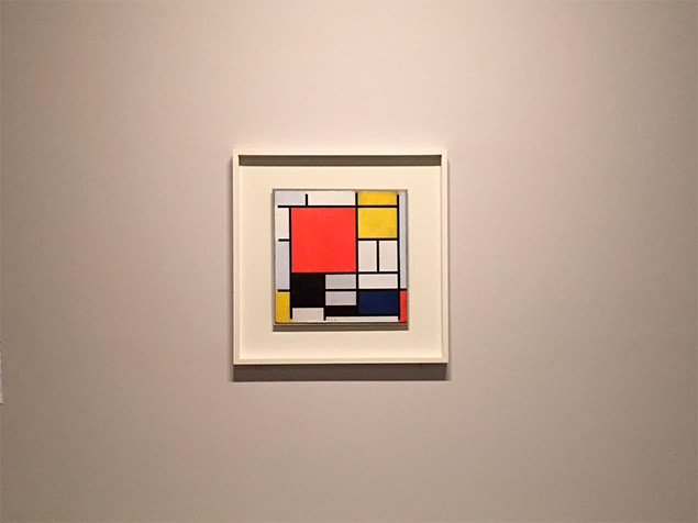A exposição não se limitou a nos fornecer a cronologia do trabalho de Mondrian e sim do Movimento De Stijl como um todo. Mas o que foi esse movimento? Primeiramente, surgiu a revista De Stijl, criada em 1917, pelo escritor, crítico de arte, poeta e artista Theo van Doesburg, Mondrian e outros artistas. Por possuir uma espécie de manifesto de conduta e pela repercussão que teve no cenário da arte tornou-se um movimento. De apenas uma revista passou, então, a ser o encontro de um grupo de artistas, designers e arquitetos, que apresentavam ideias e teorias sobre uma nova estética, que era unir o que havia de moderno com o cotidiano da cidade. Não buscavam padronização, mas tão somente “soluções específicas voltadas para algumas pessoas, espaços ou circunstâncias, tanto na arquitetura como no mobiliário ou na pintura”.